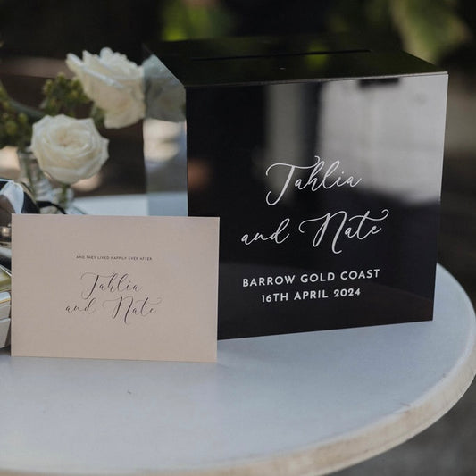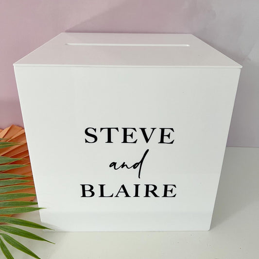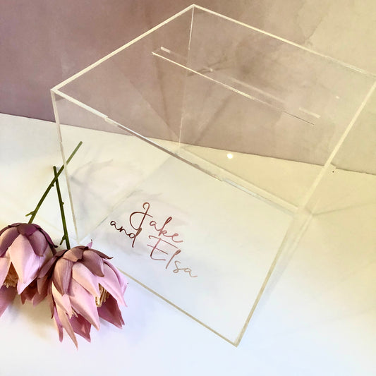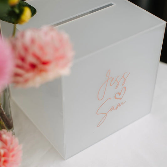 Acrylic Wedding Wishing Well Card Box available in frosted, clear, white and black.