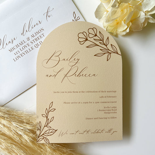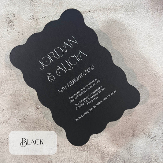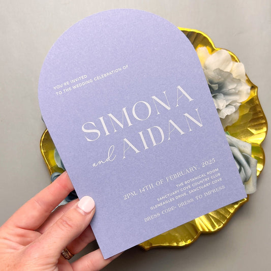 Choose your shapes and layer them up! My die cut invitations are perfect for your wedding or any event. All my invitations are customisable. Choose your shape, choose your card colour- even your fonts. Some of my most popular shapes are Arch, Oval, Wave (also know as squiggle), Sail (also known as half arch), Half Circle or Circle.