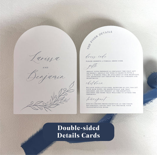 Larissa Arch Dusty Blue Invitation Set - Invite and Details / RSVP Card