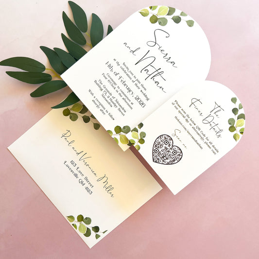 Sierra Wedding Invitation Set - Eucalyptus Arch Invite and Details / RSVP Card