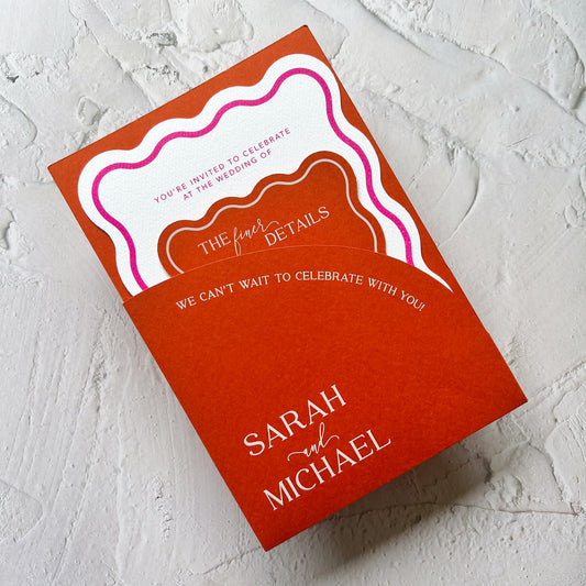 Allure Wave Pocket Arch Invitation Burnt Orange and Hot Pink