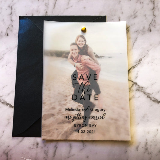 Vellum Save the Date Photo Invitation
