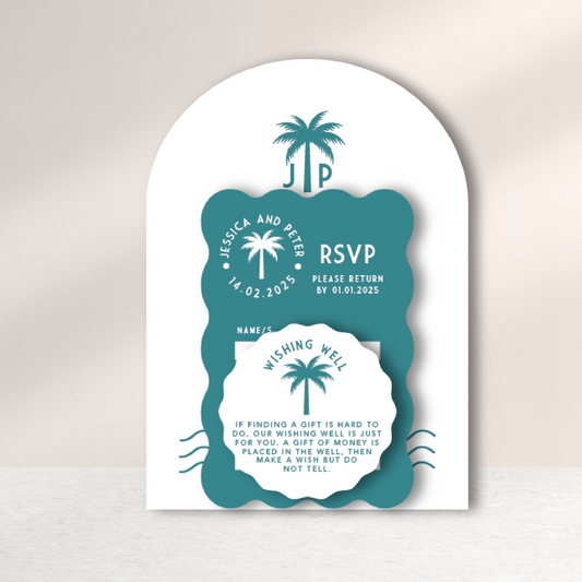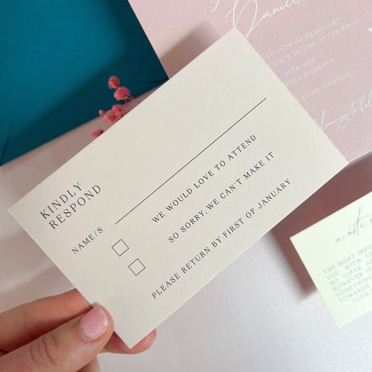 Willow Wave Shape Layered Invitation Set - Invite and Details Card in Dusty Pink and Nude