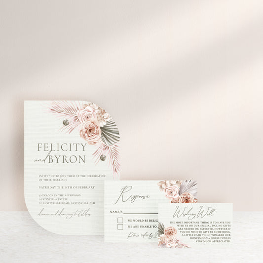 Eden Gold Foil Dusty Pink Arch Wedding Invitation Suite