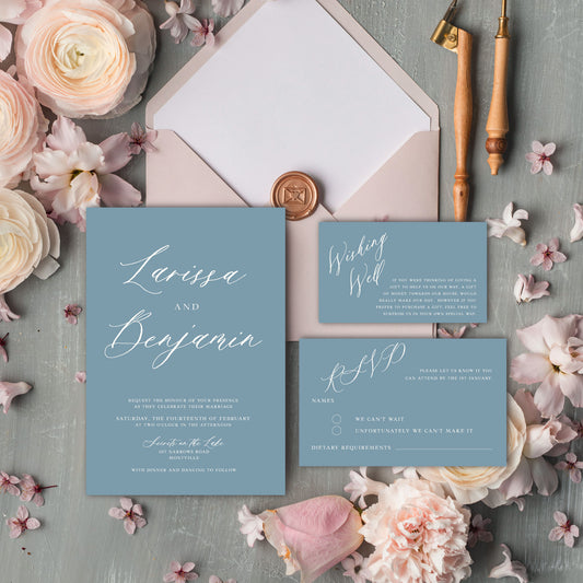 Ella Invitation Set - Invite and Details / RSVP Card in Dusty Blue