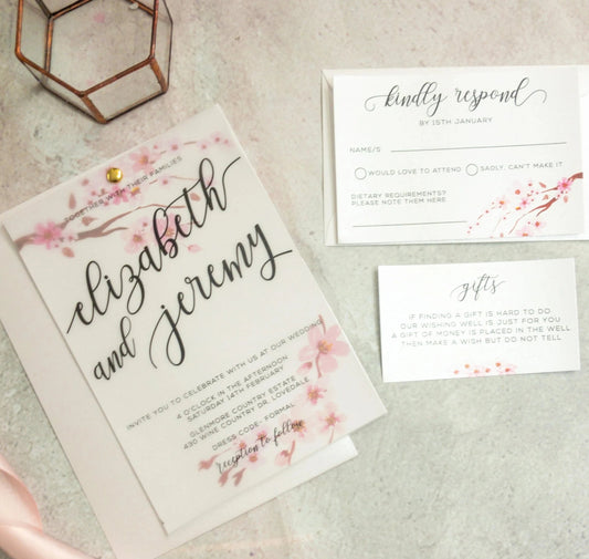 Elizabeth Vellum Cherry Blossom Wedding Invitation