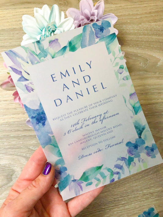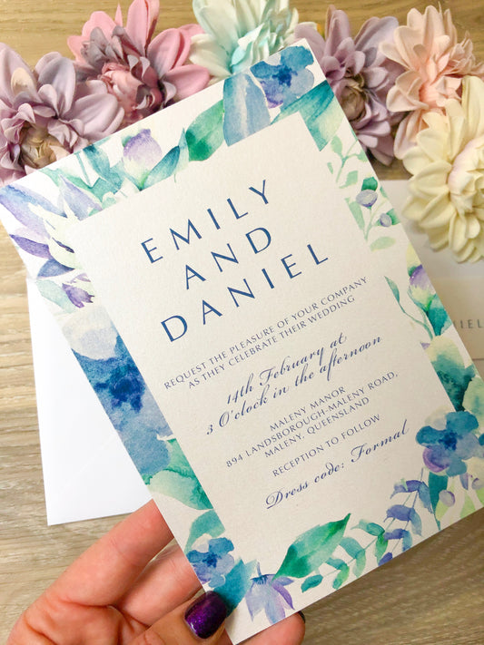 Lauren Rustic Watercolour Flower Wedding Invitation